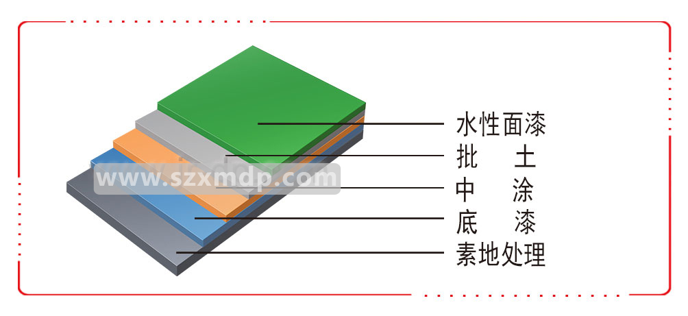 ![]() 素地處理:依素地狀況做好打磨、修補、除塵; 底 涂:只要不積水或不明顯滲漏就可施工,具有一定透水氣功能, 能增強素地強度及增加涂層封素地的附著力; 中 涂:將水性環氧樹脂加入適量石英砂,用鏝刀將其均勻涂布一道, 用于增加厚度及涂層抗壓強度; 批 土:依實際需要施工二至三道,要求達到平整無孔洞、無批刀印及砂磨印為準; 面 漆:用滾涂型水性環氧面漆二道,或鏝面型水性環氧面漆一道, 完工后要求整體地面光澤柔和、潔凈、顏色均一、無空鼓。 | ![]() ◎ 耐磨性優、硬度好; ◎ 環保、防塵、防霉; ◎ 無接縫、便于清潔; ◎ 耐水、耐油污、耐酸堿等一般化學腐蝕; ◎ 固化性能受溫度、濕度影響較小, 對濕面有較好的粘接強度; ◎ 厚度0.3-3mm、使用年限為5-10年。 |
