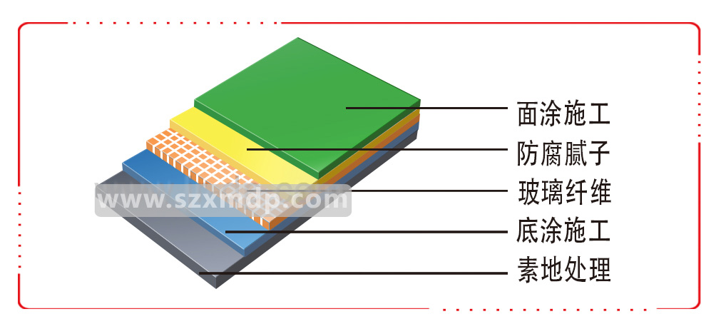 4. 環(huán)氧膩子:用環(huán)氧雙組份加入適量膩子粉,用鏝刀將其均勻涂布多道;